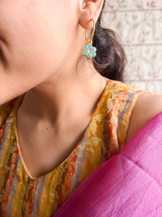 Phool charm gold plated silver hoops with turquoise stone