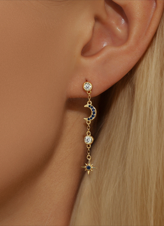 Moonstar silver danglers in 18k gold plating