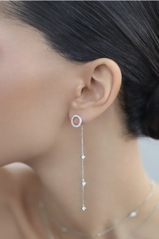 Orb long dangler with tassel in sterling silver and studded zircons