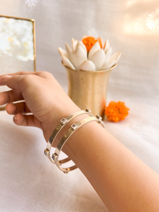 Sharvari silver bangle with white square onyx (for 1 pc)