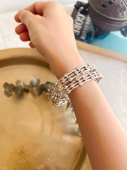 Tara mandal bangle in sterling silver with zircons (1pc)