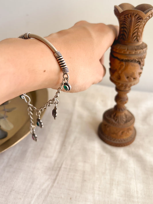Ishani silver Kada / Bracelet with flower charms (adjustable)