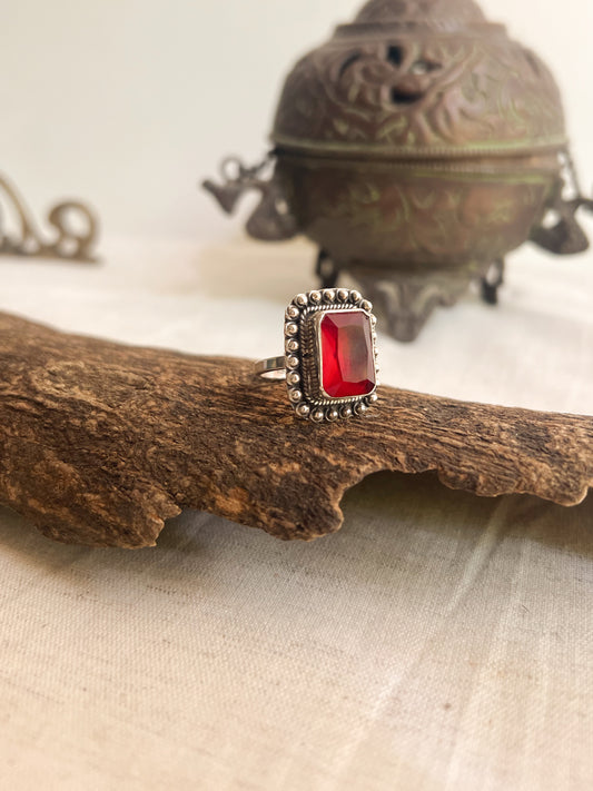 Kashish silver ring with square red onyx (adjustable)