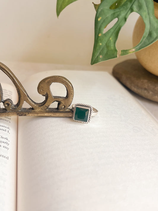 Dhara oxidised silver ring with malachite stone (adjustable)