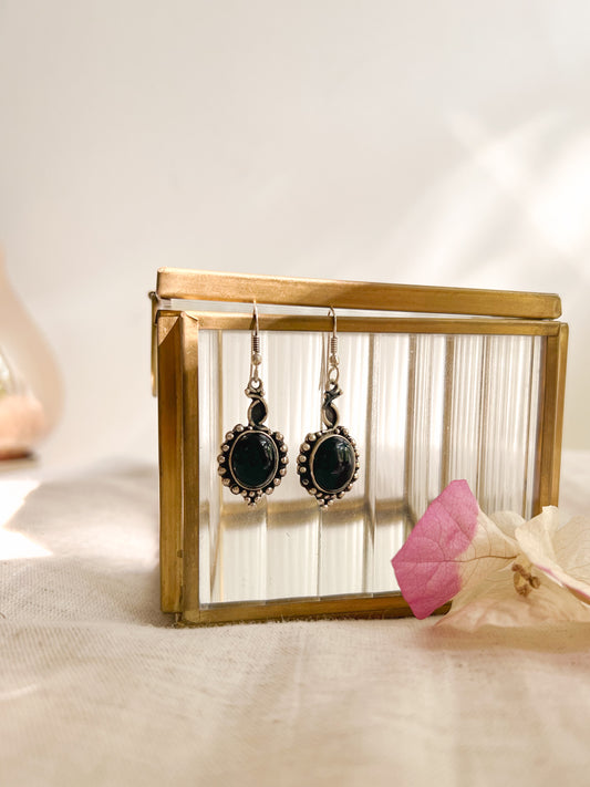 Sahar fish hook earring in silver with black onyx stone