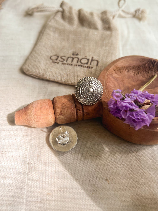 Teertah oxidised silver ring with pink onyx (adjustable)