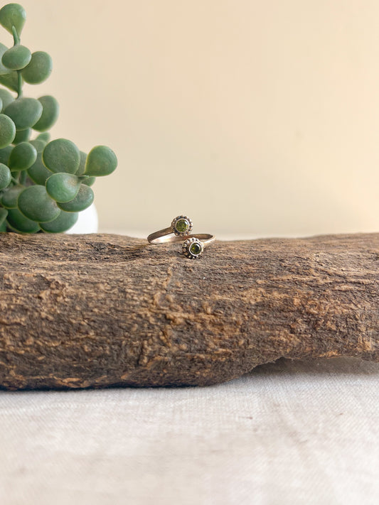 Do tara adjustable ring with green zircon in sterling silver