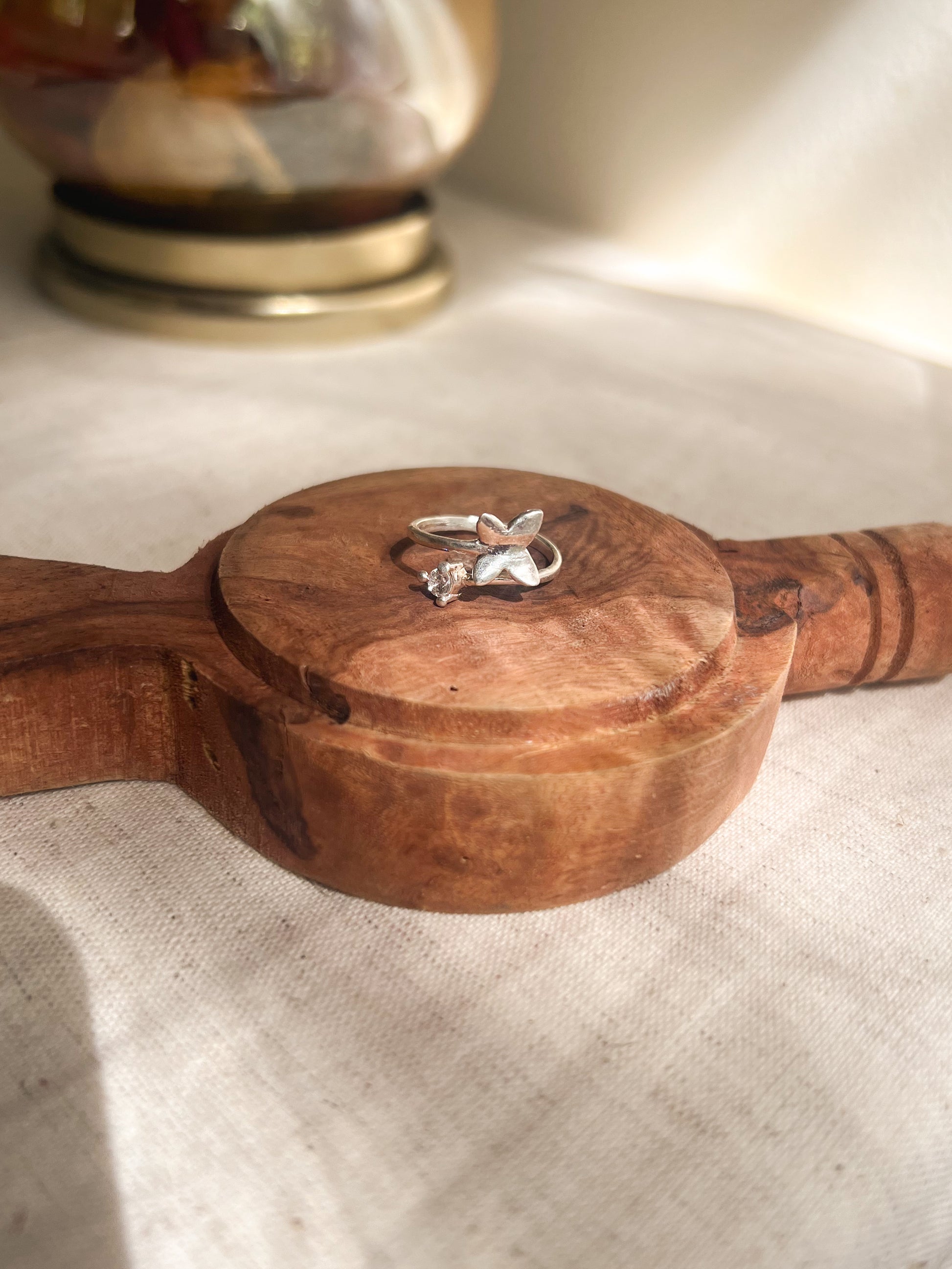 Very delicate butterfly motif on one end and zircon stud on other this is a ring that you can wear everyday effortlessly. It can be easily adjusted as per your convenience.