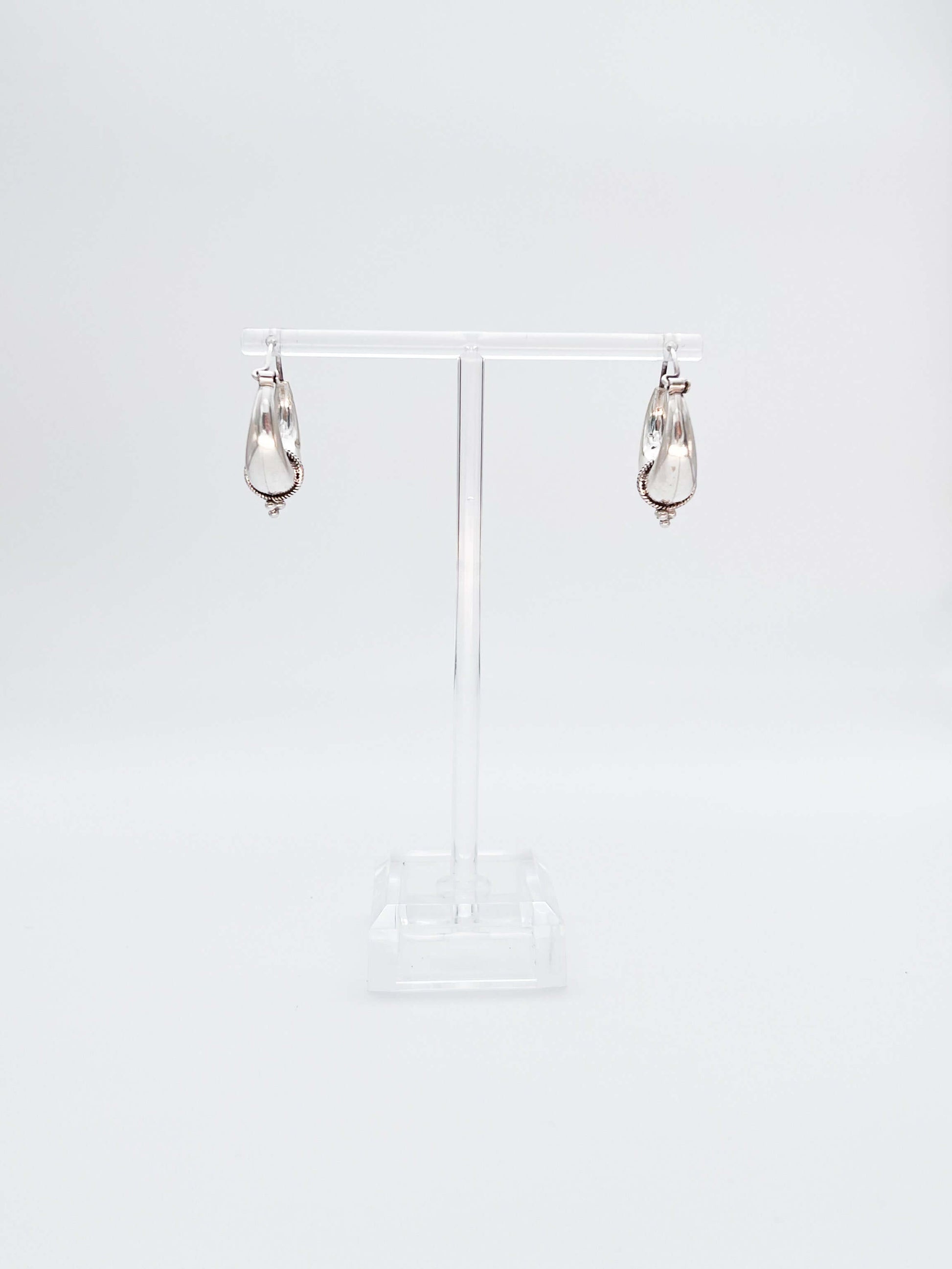 These minimal silver hoops with little rope like detail , are the ones that make up for a timeless piece. It can never go out of style. get ready to be obsessed with these. Not just with your ethnics but pair them with your westerns as well.