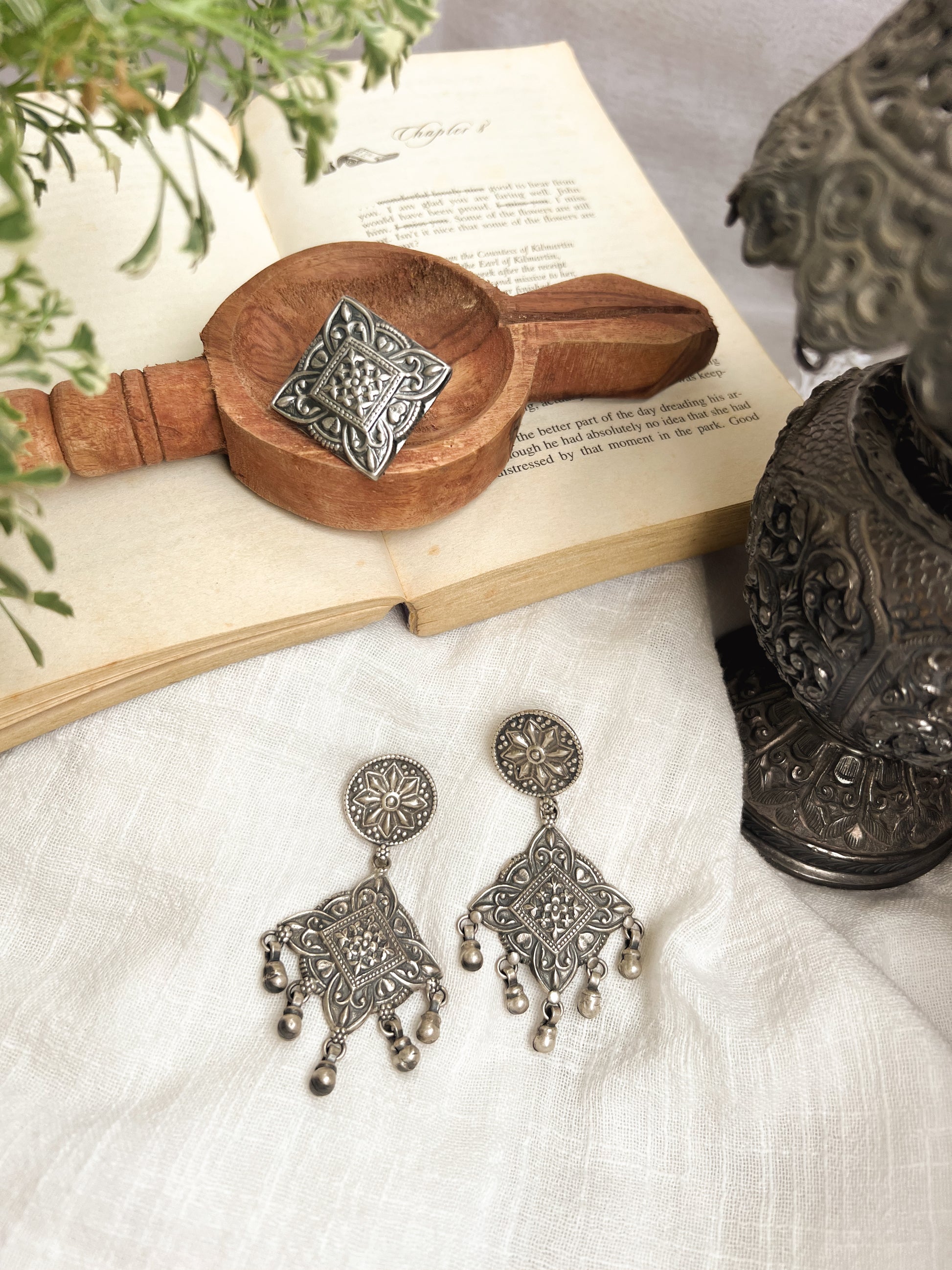 Chausar oxidised silver danglers