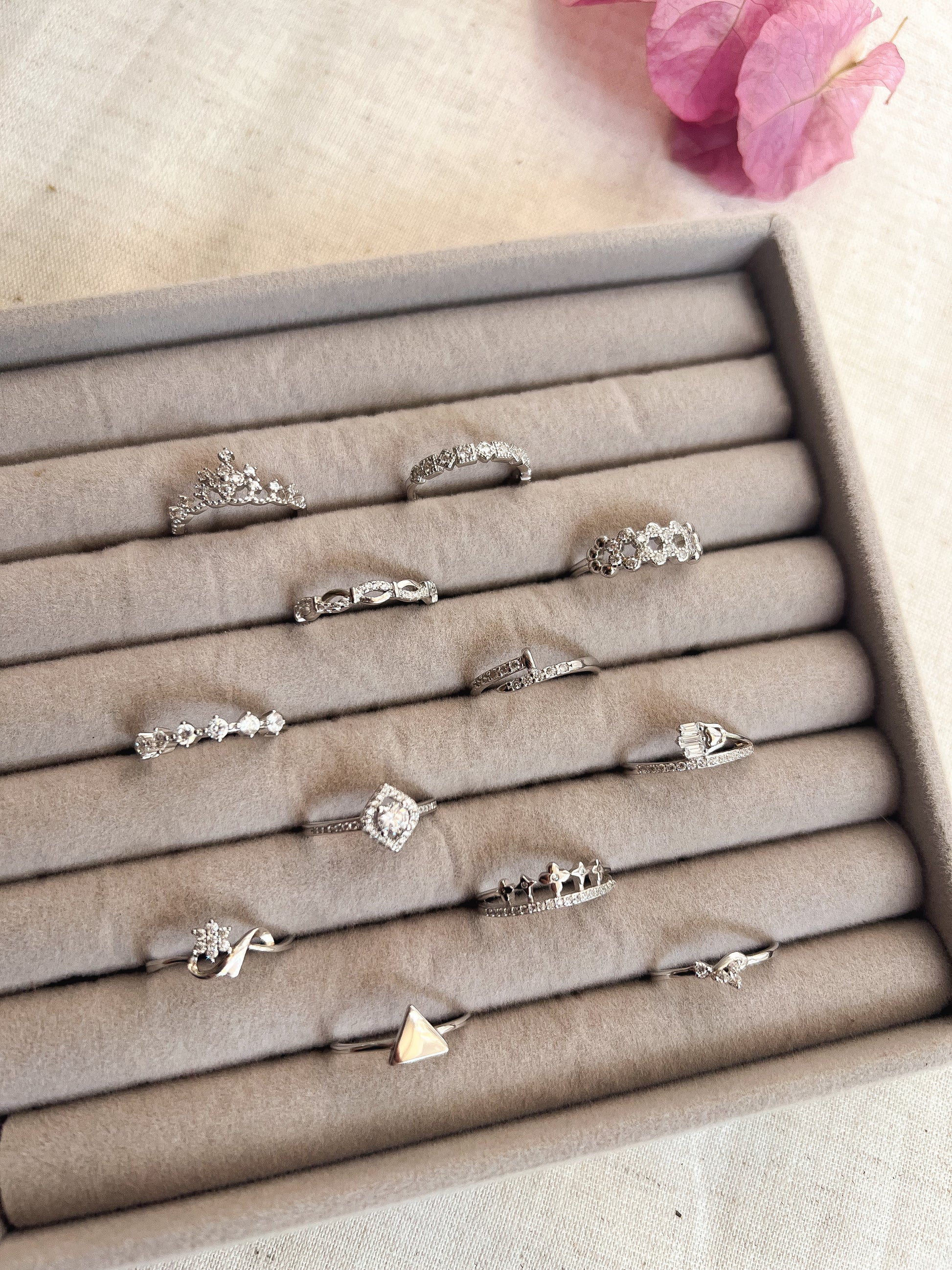 Delicate lightweight and dainty assorted rings with high quality workmanship. All are single pieces with single size as mentioned below with the ring name in 925 silver.