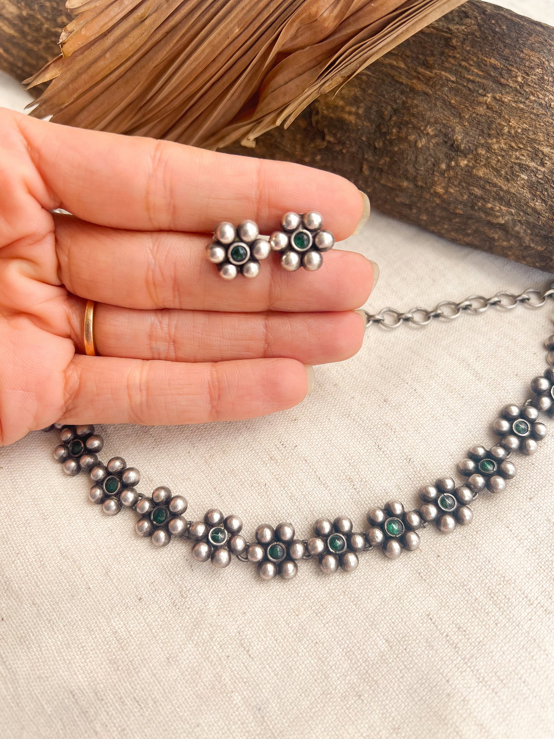Classic floral necklace sits perfectly along the neck, for those who loves minimal yet indian touch to their outfit. Inspired by the temple motifs its a timeless accessory perfect to add a hint of elegance and festive glamour to your look!