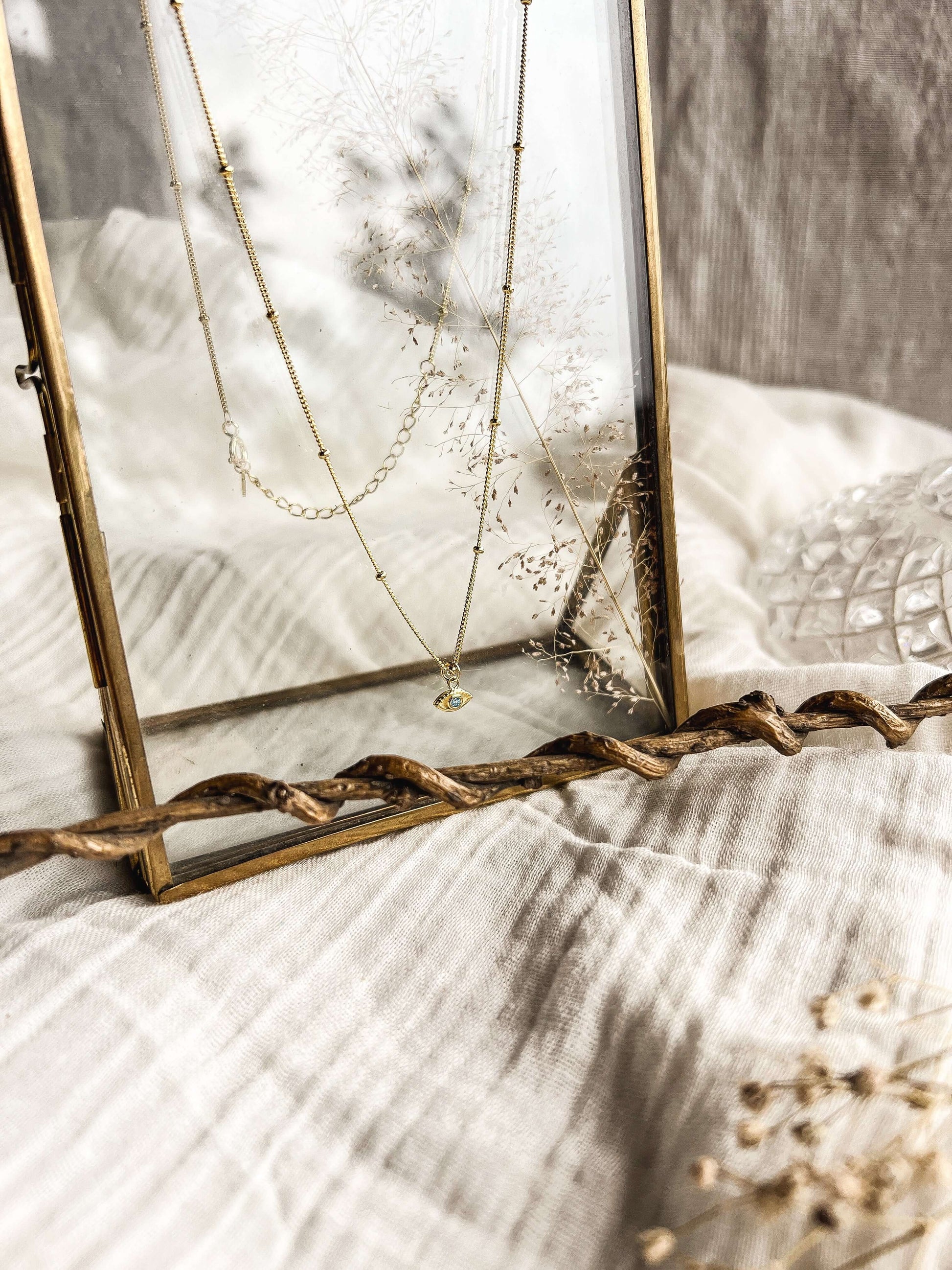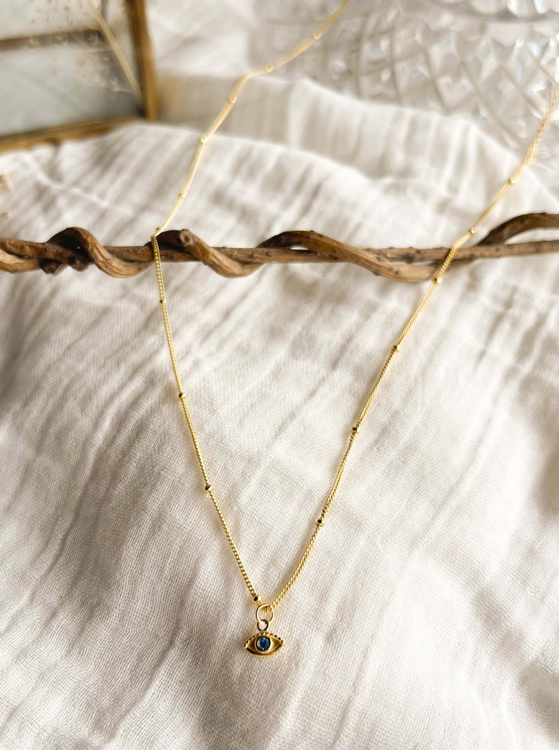 Evil eye necklace in gold plating with beaded chain