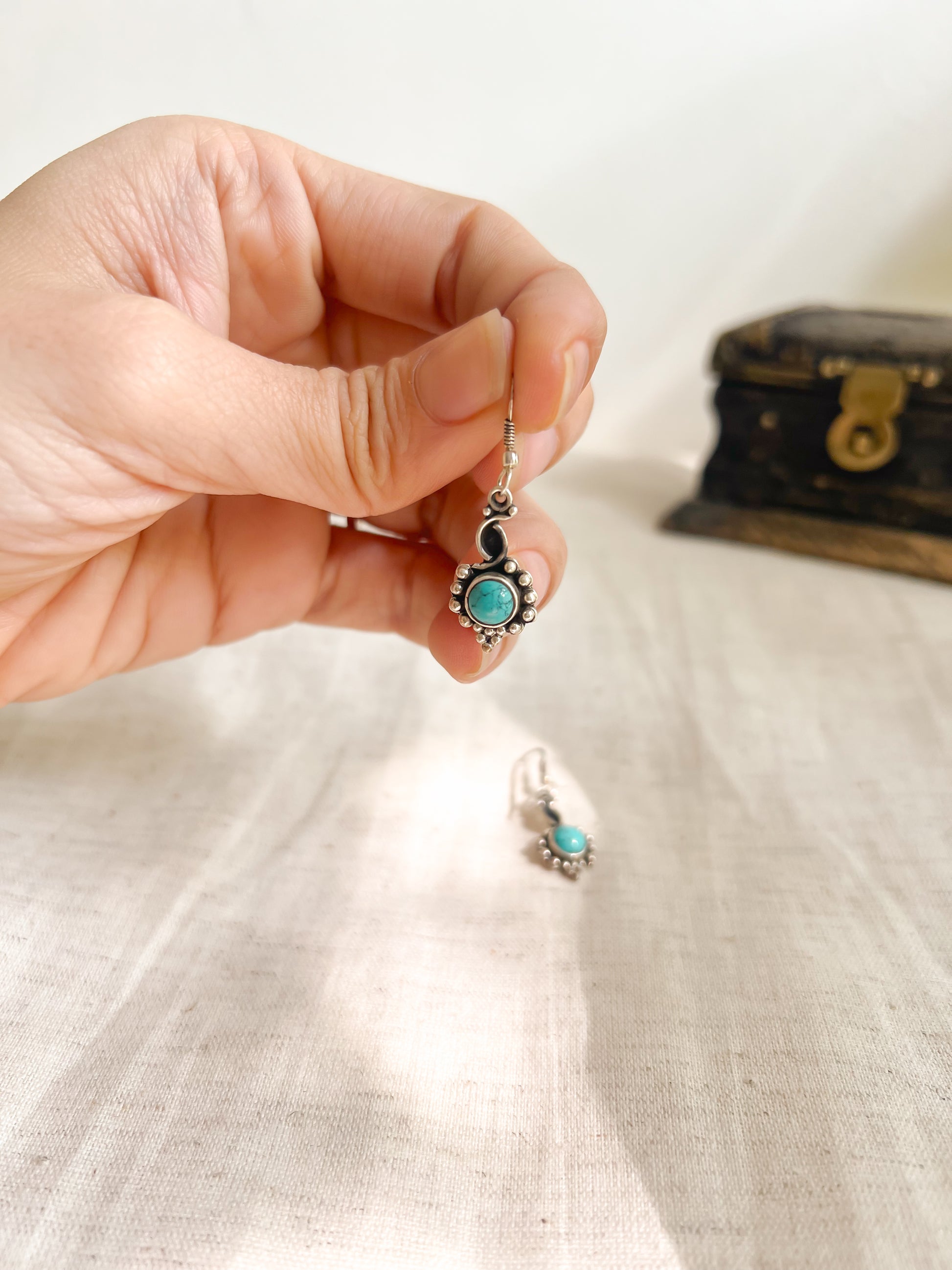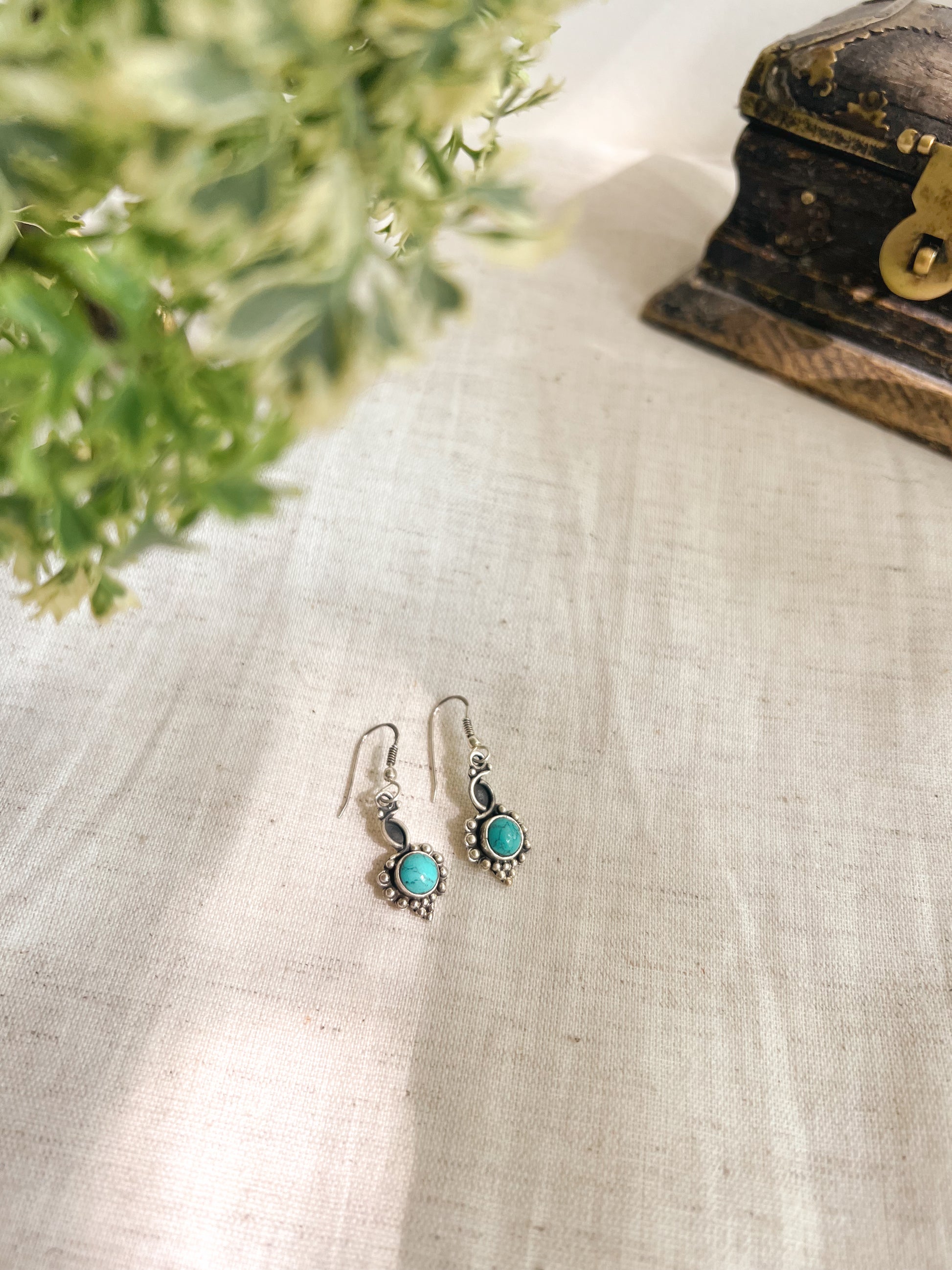 Firoza turquoise stone fish hook earrings in silver