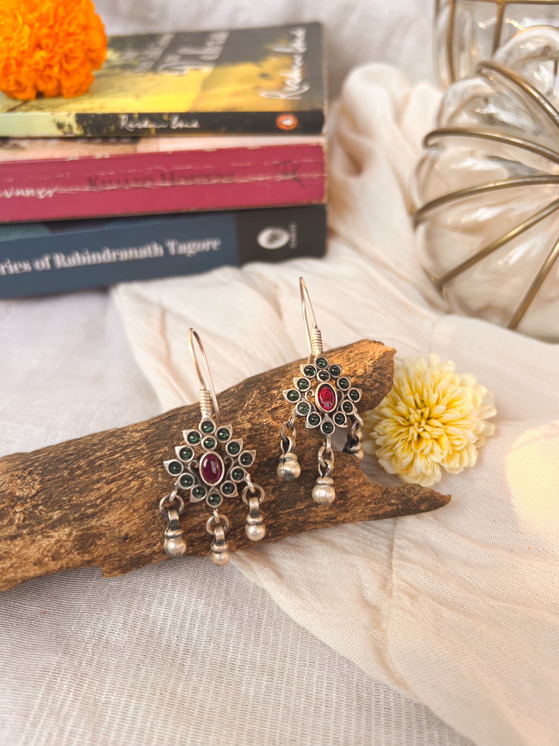 Janaki oxidised silver fish hook earrings with ghunghroo