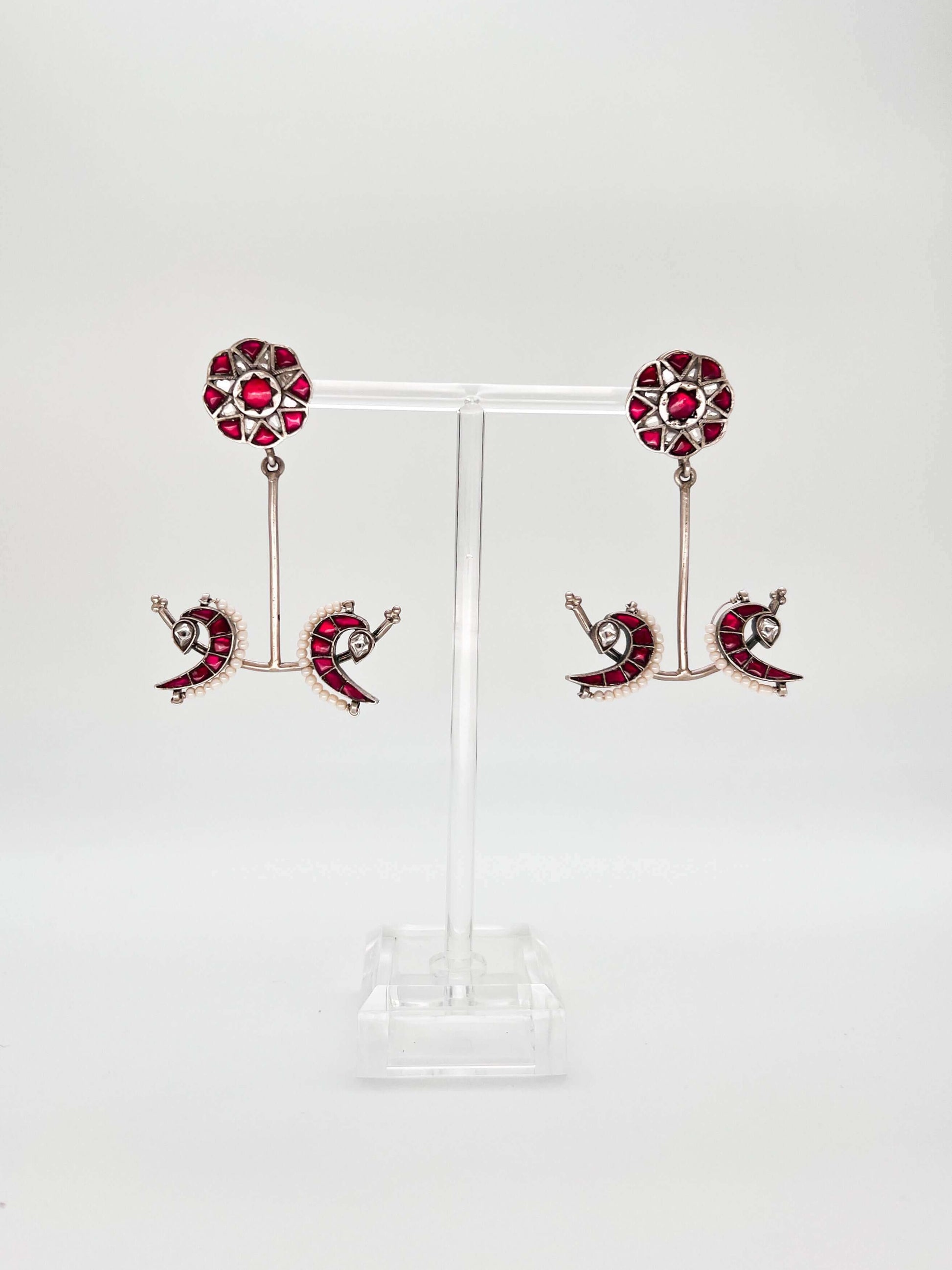 Mayuri silver danglers with ruby pink and white kundan