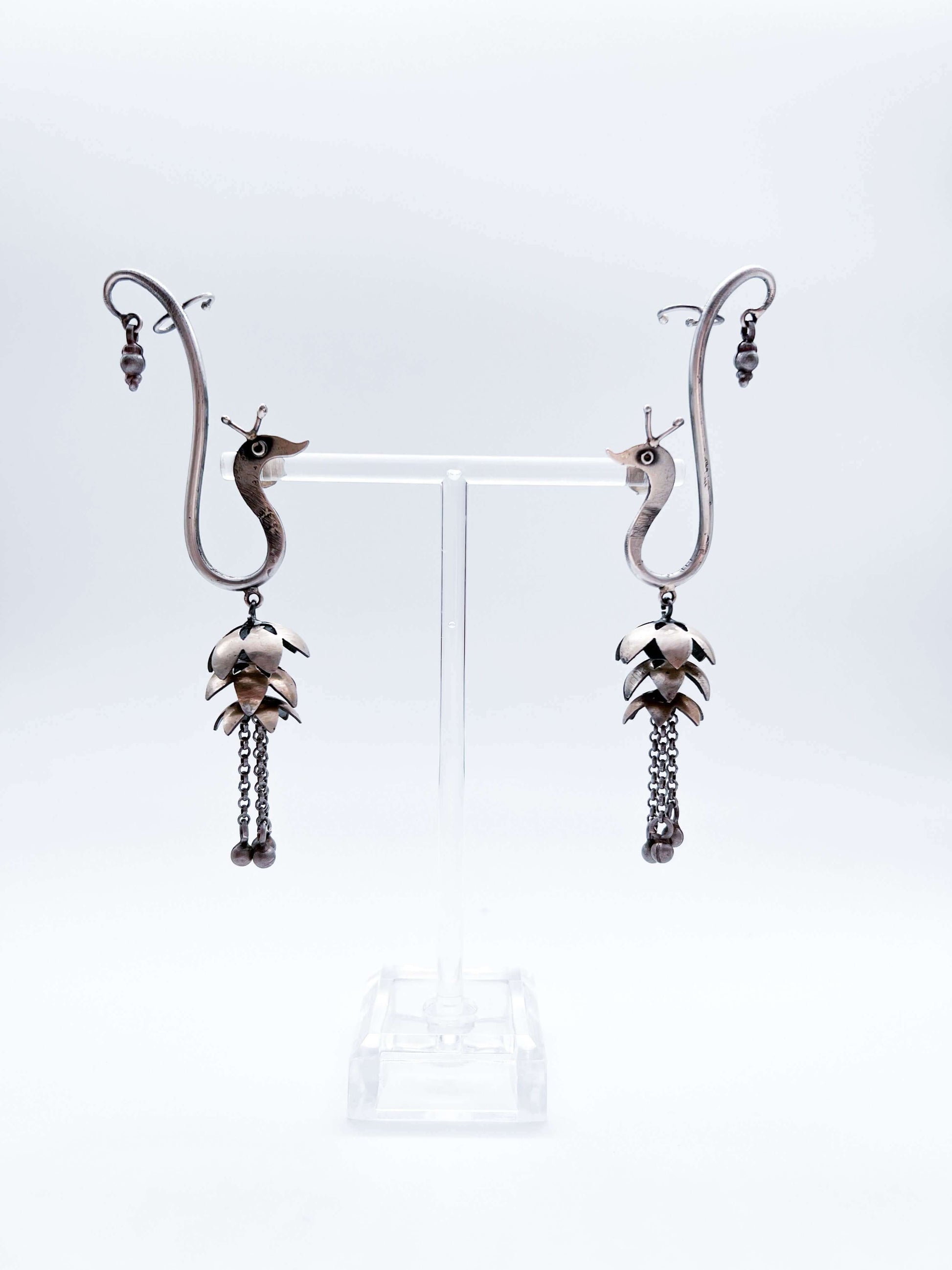 Mihira oxidised silver swan earcuffs