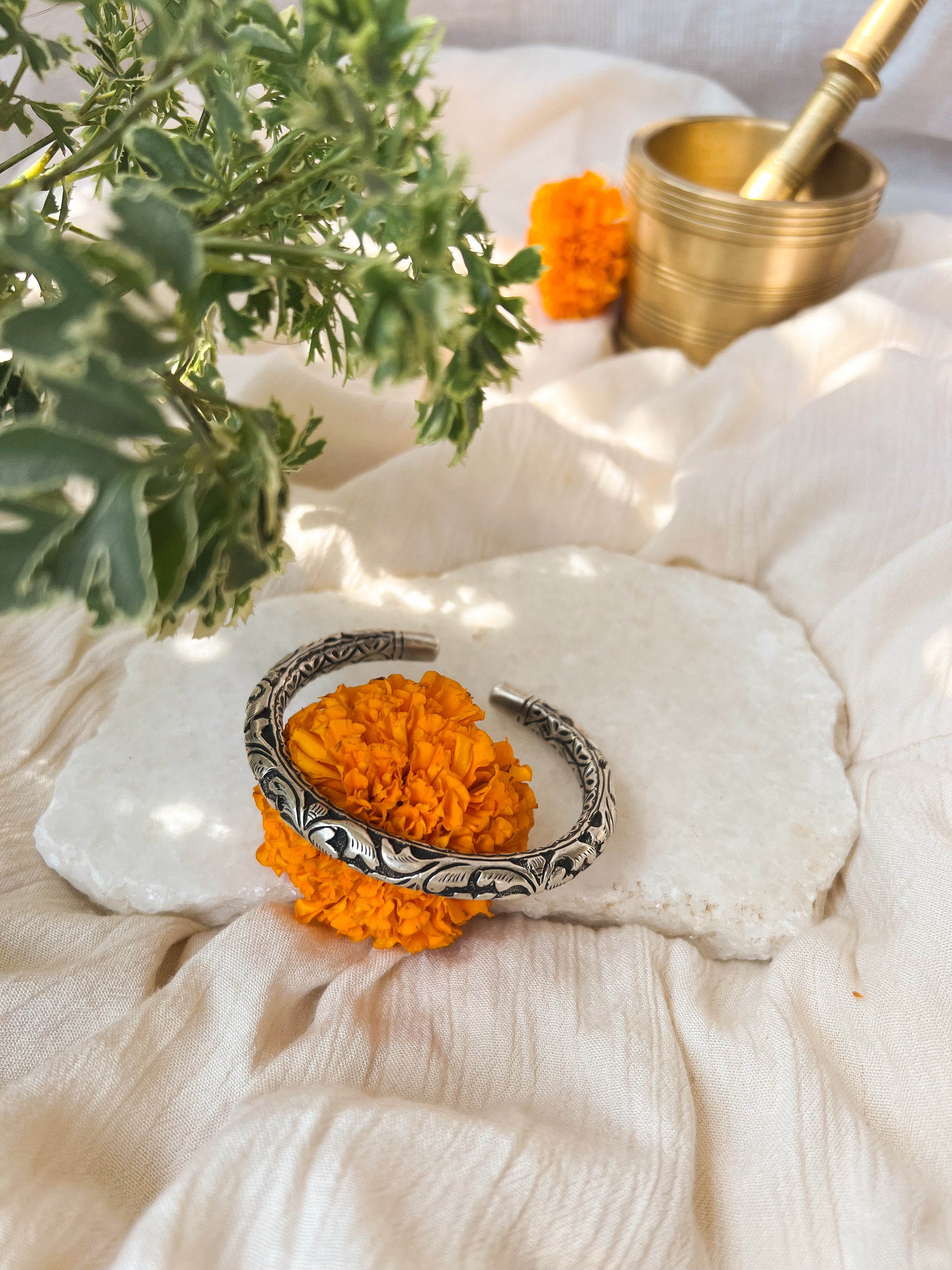 The perfect blend of boldness and elegance! This chunky kada is not your average accessory – it's adorned with intricate decorative creepers that wind their way around the entire surface, adding a touch of natural beauty and charm.
