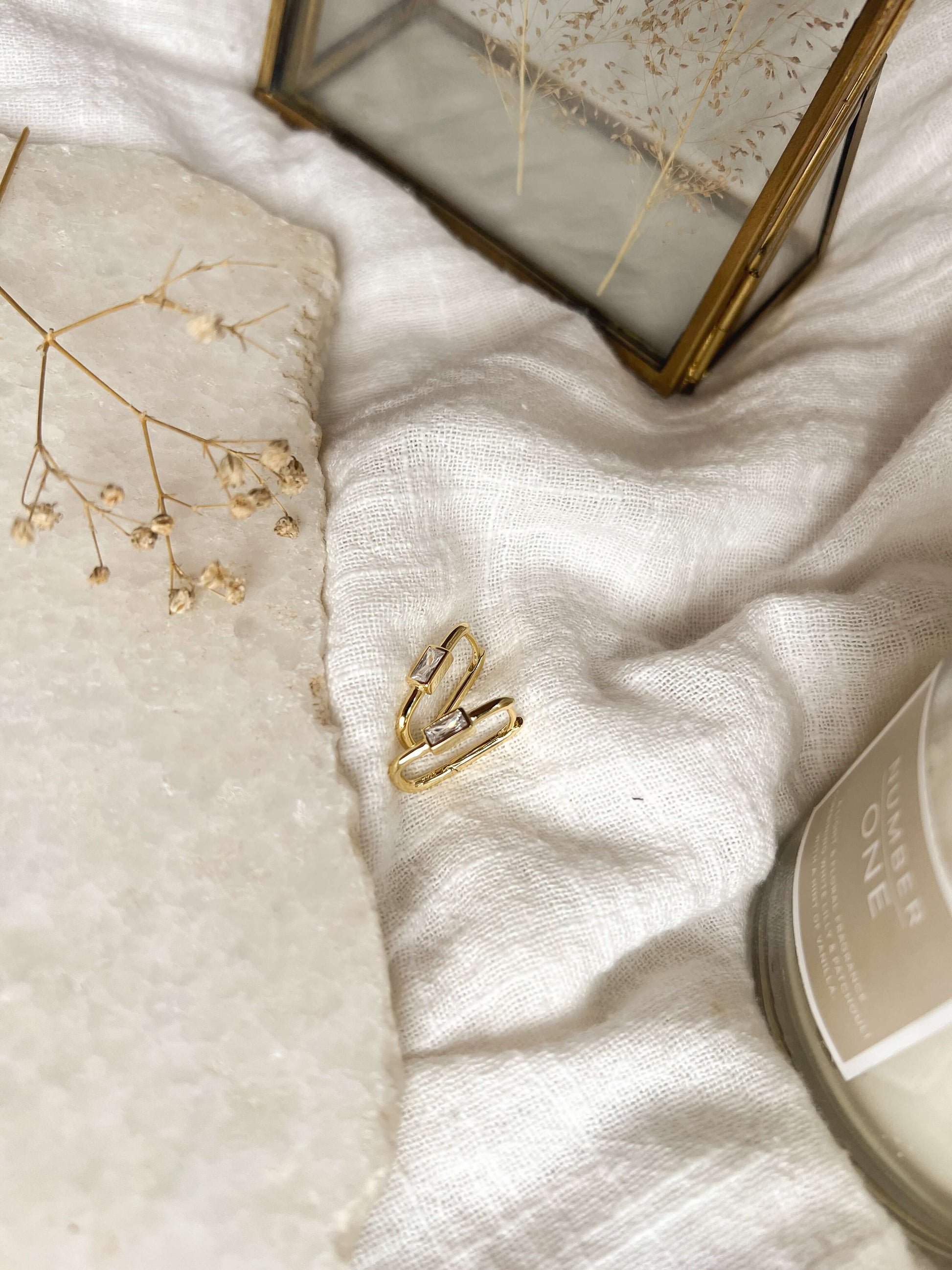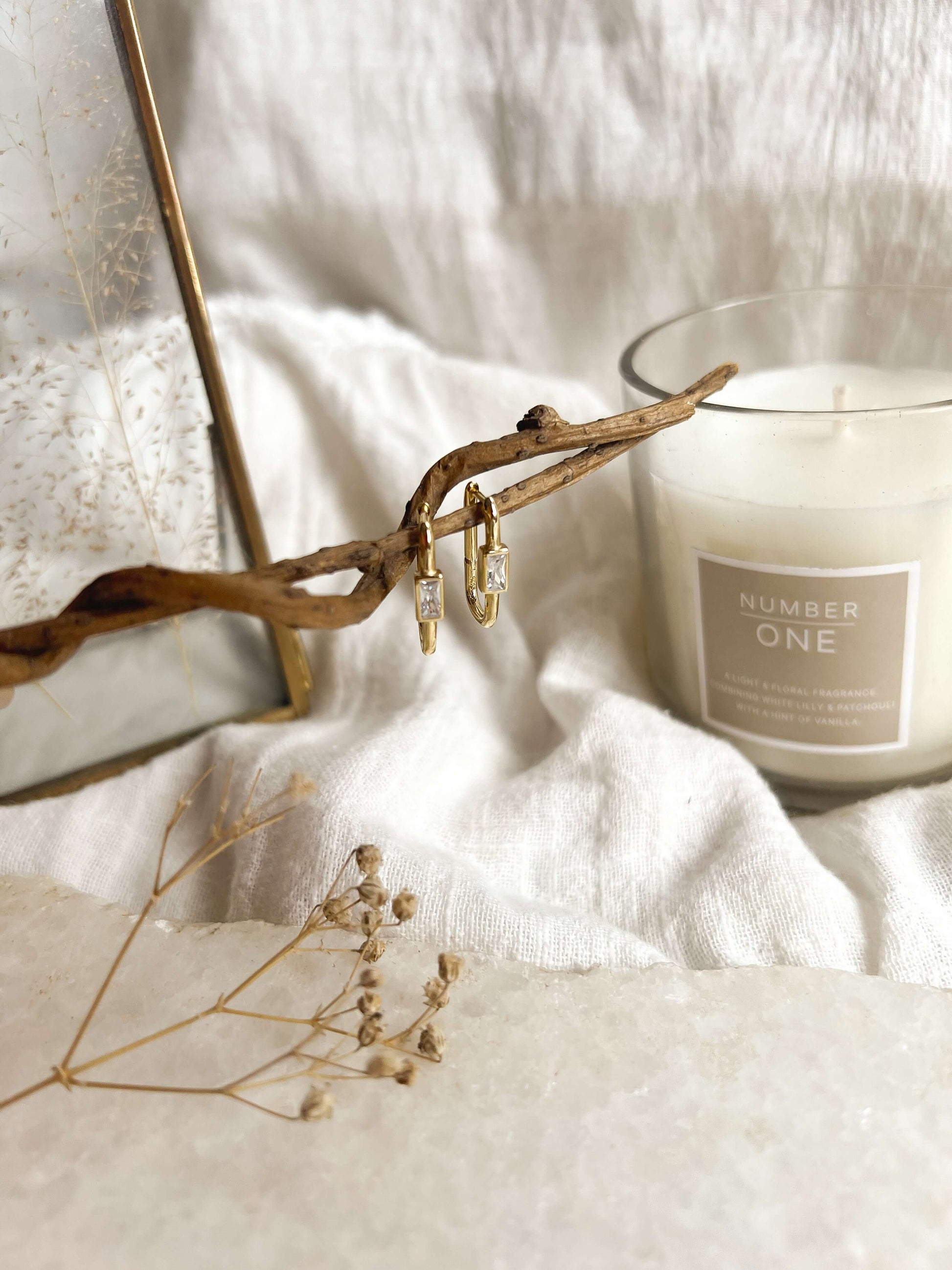 Featuring a squared corner hoop design and a crystal studded on one side, they are sleek and dainty. Crafted with high-quality materials for lasting shine and comfort. Give out a very feminine energy with these sterling silver gold-plated earrings.