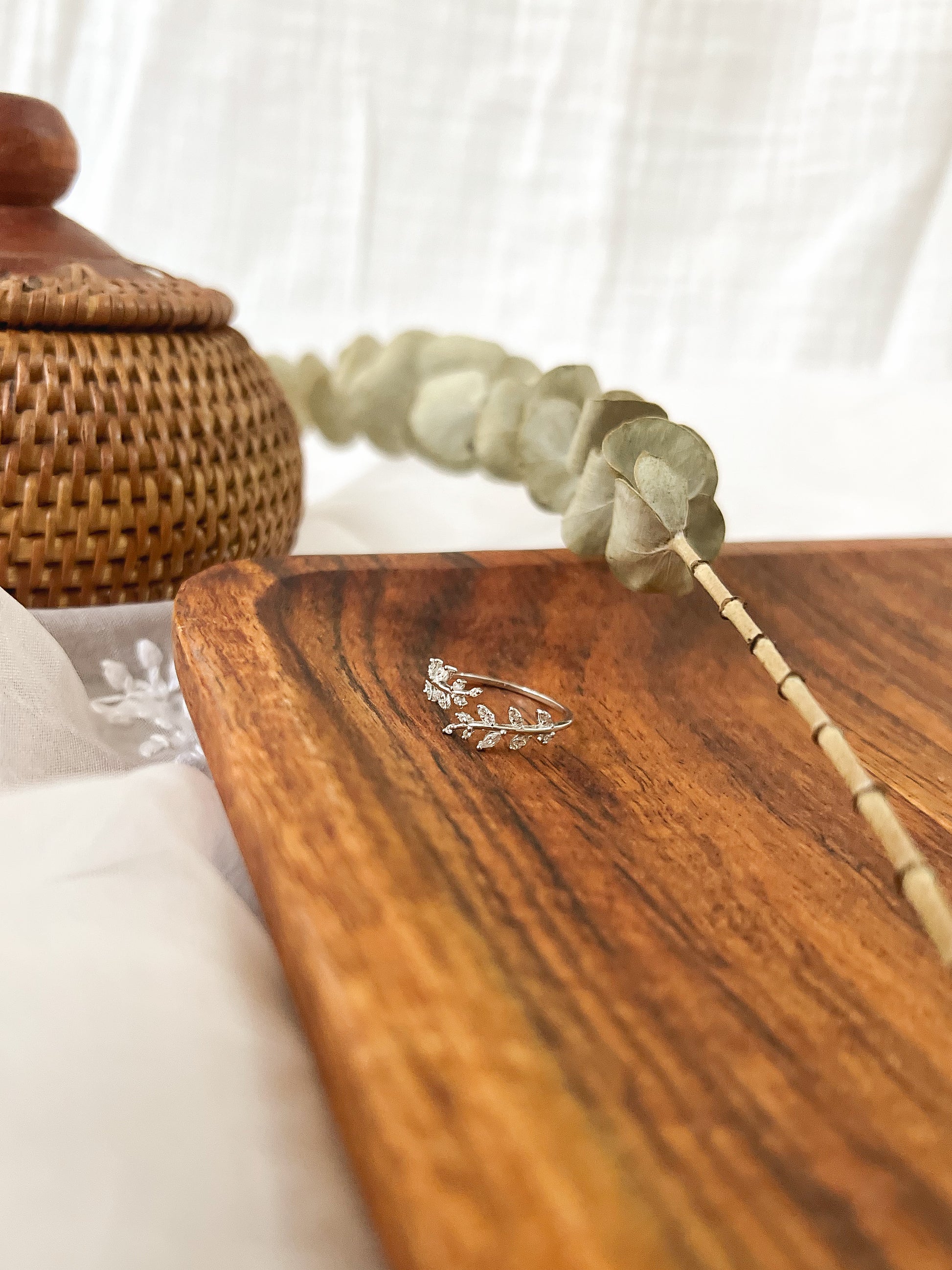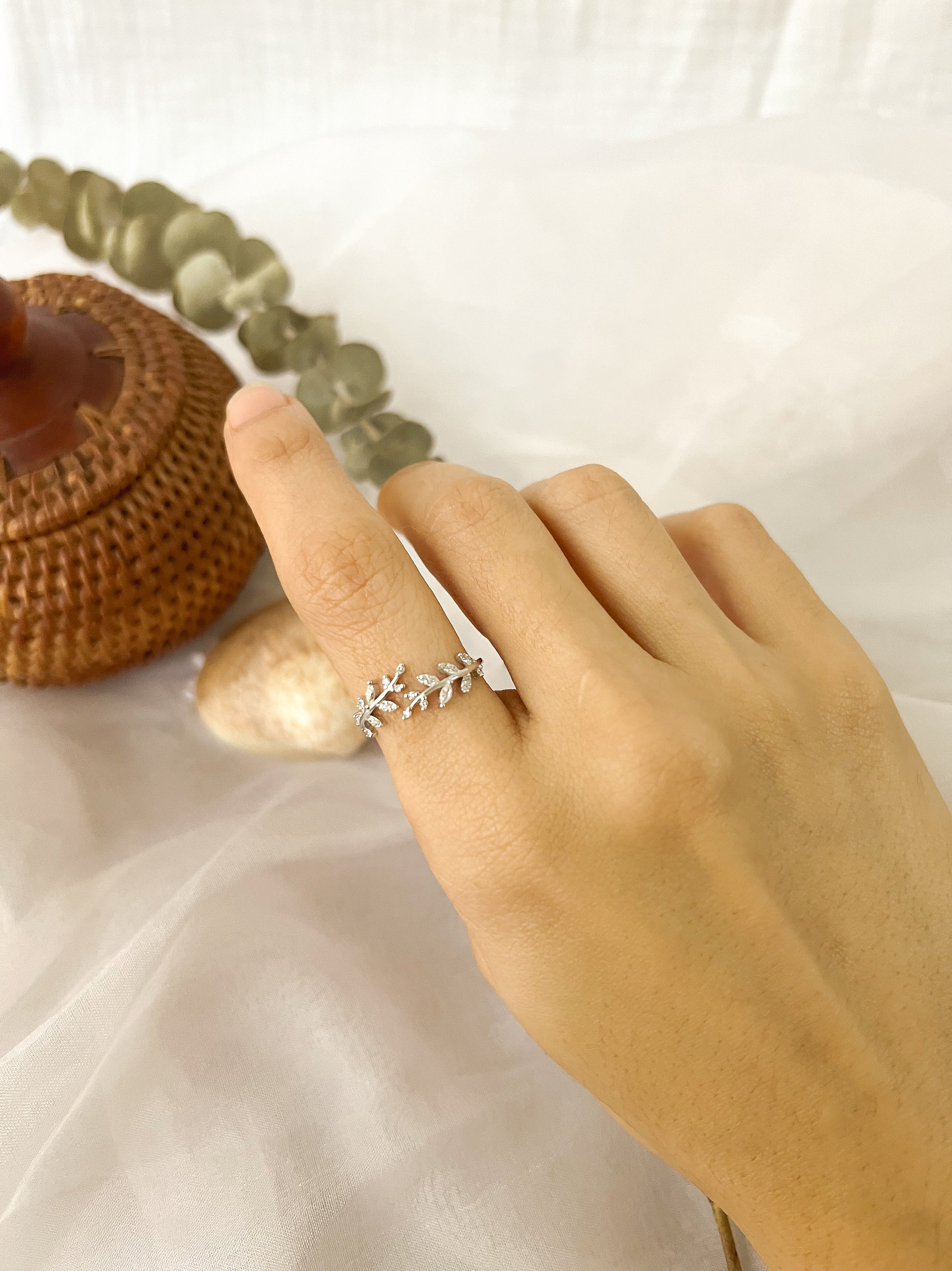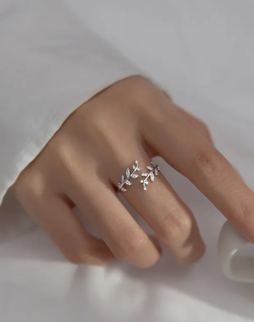 Olive branch sterling silver adjustable ring