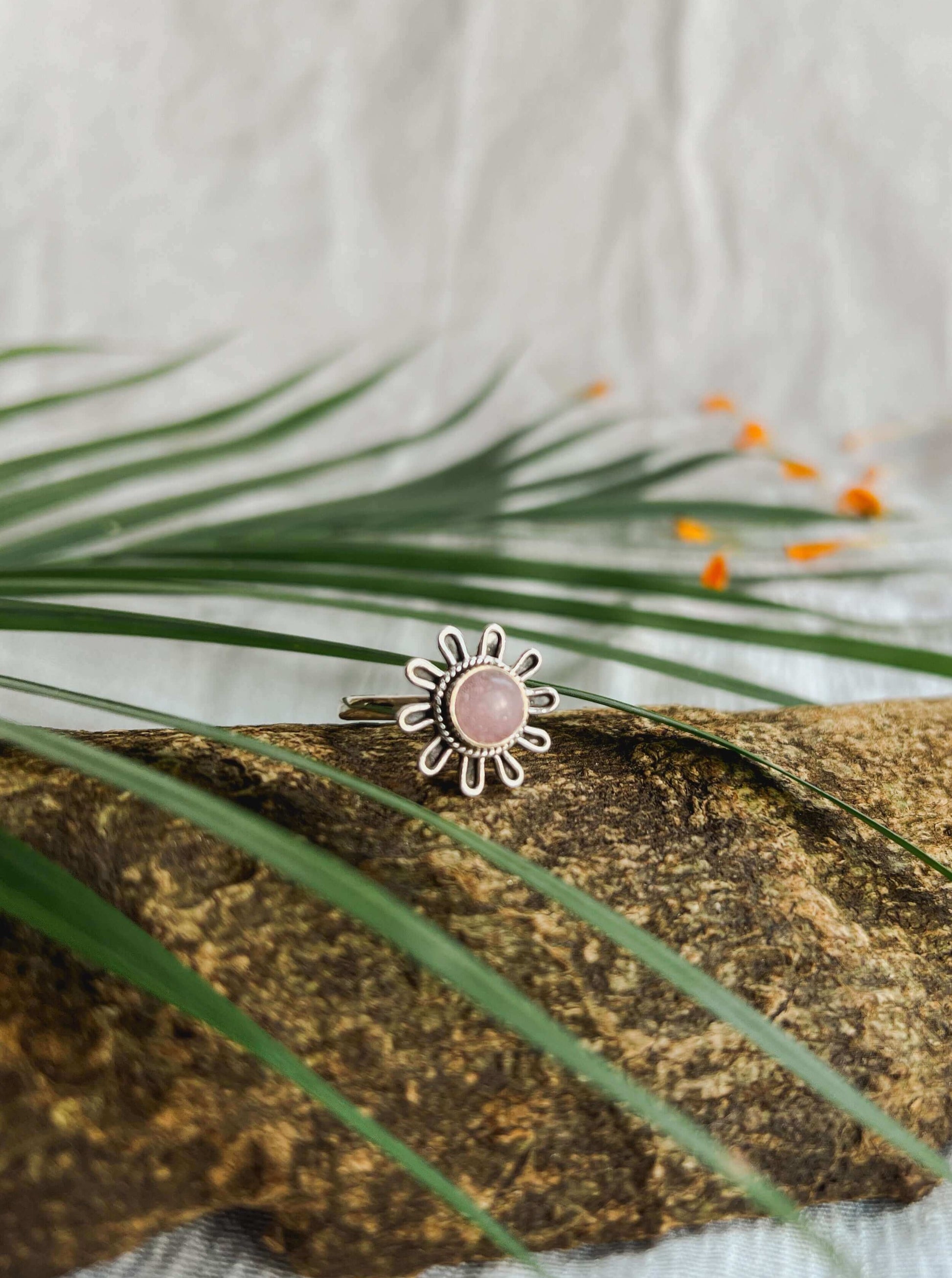 This light as a petal ring with rose quartz stone in centre and silver petals around , makes you fall in love instantly with the simplicity of it.