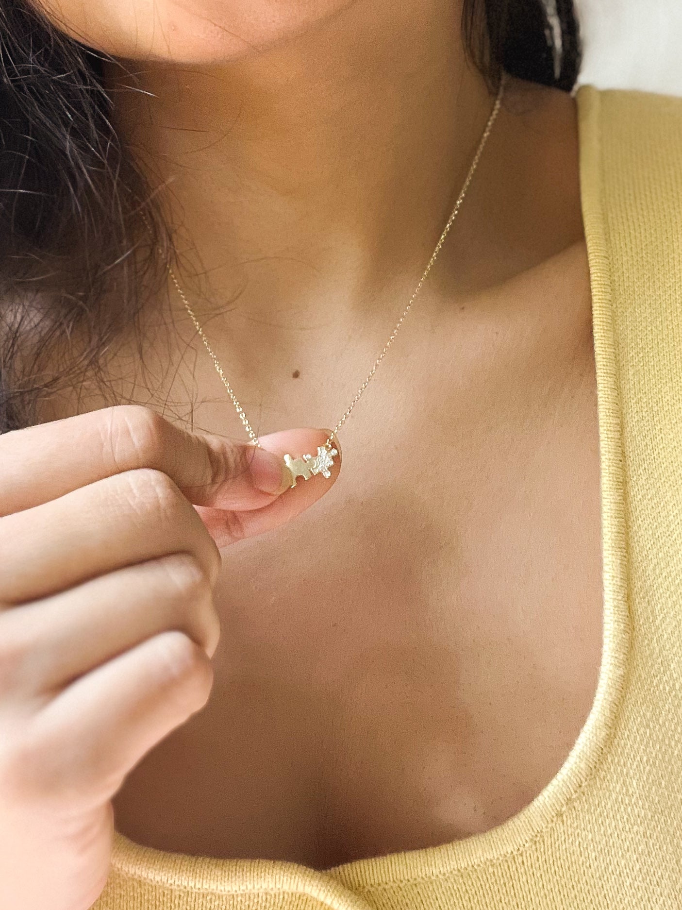 Pieces of puzzle 18K gold plated neck chain in sterling silver