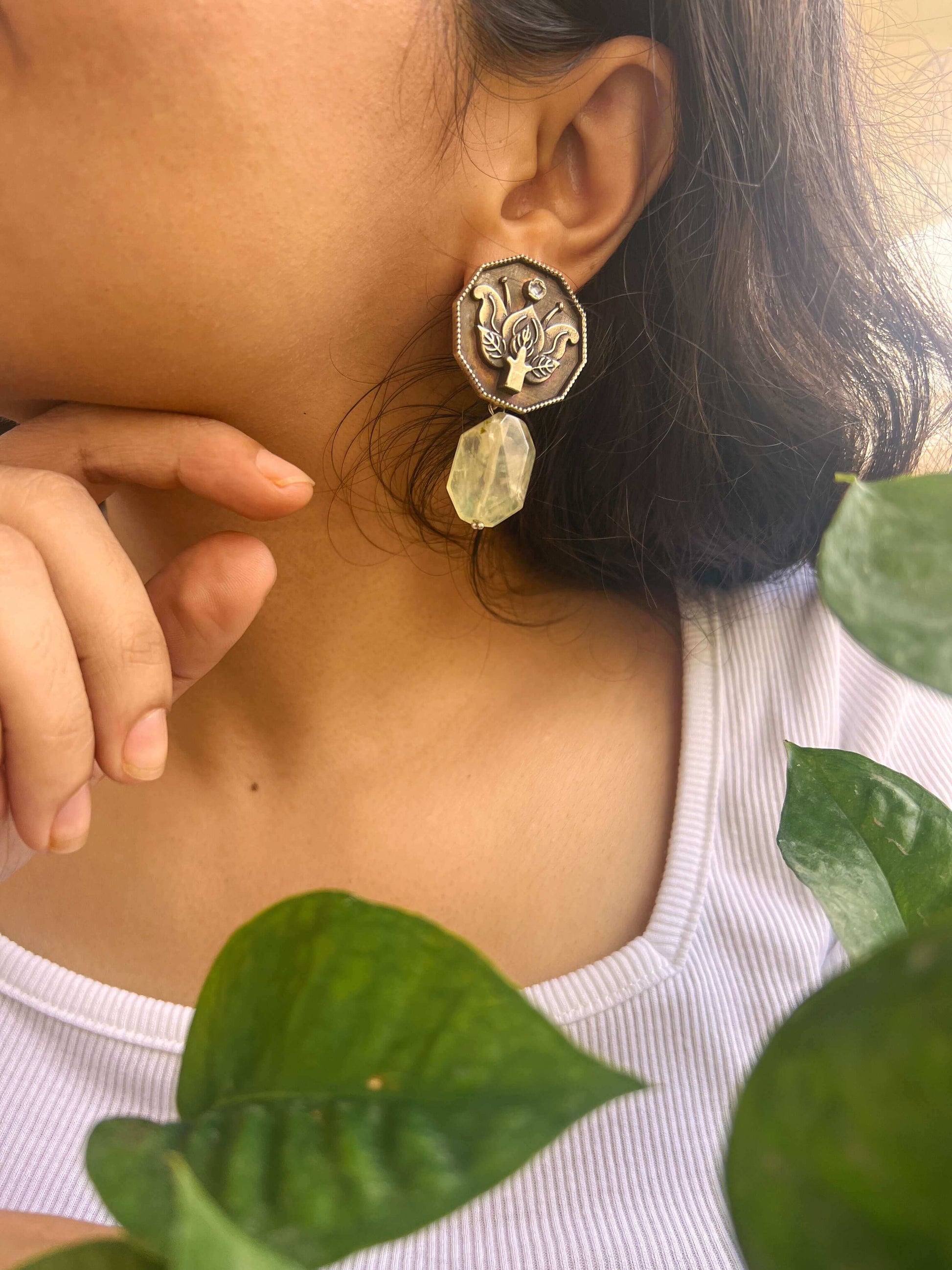 Oxidised silver medallion with hanging jade stone , makes for a very indo-western earring with a modern vibe.