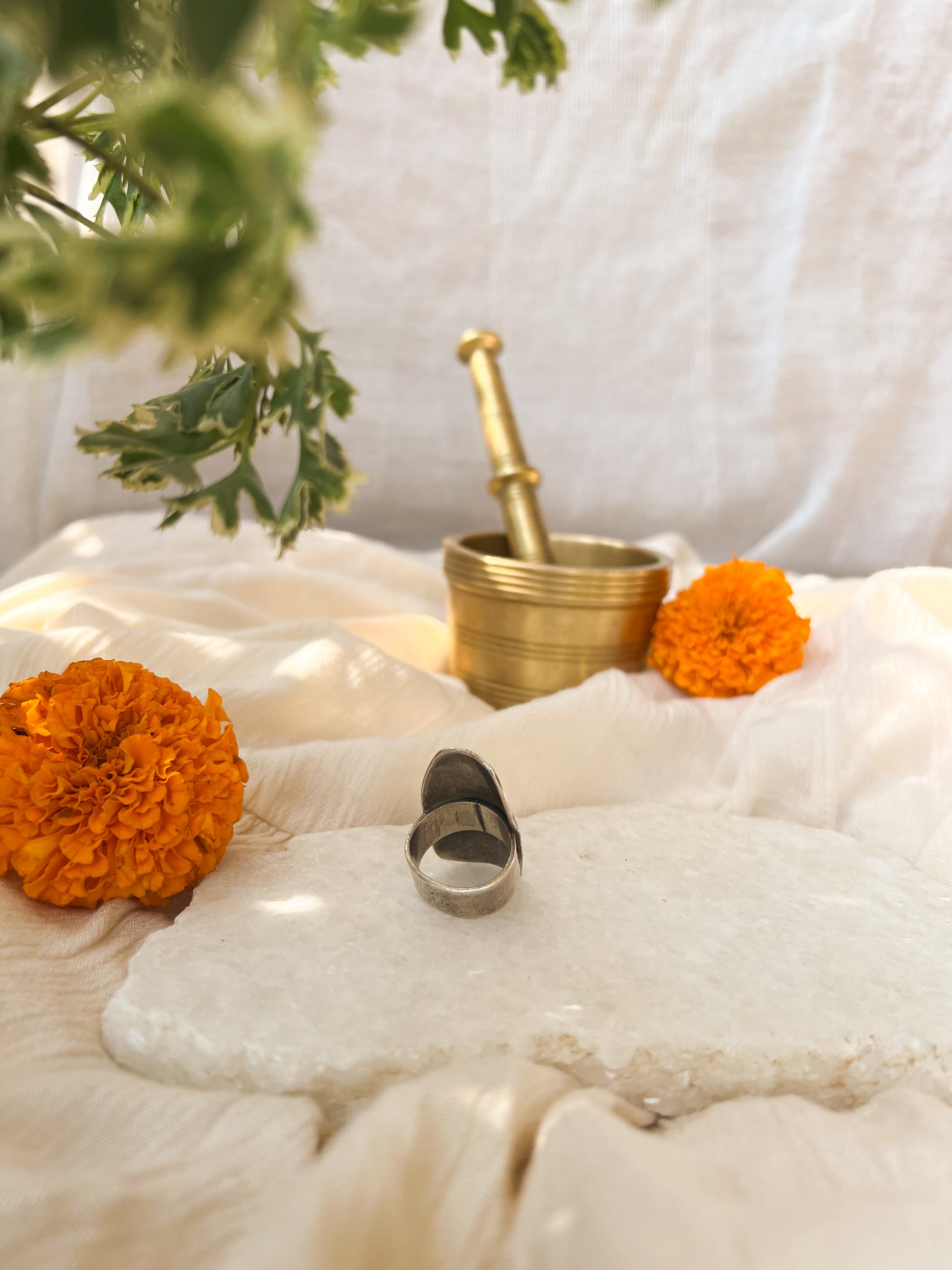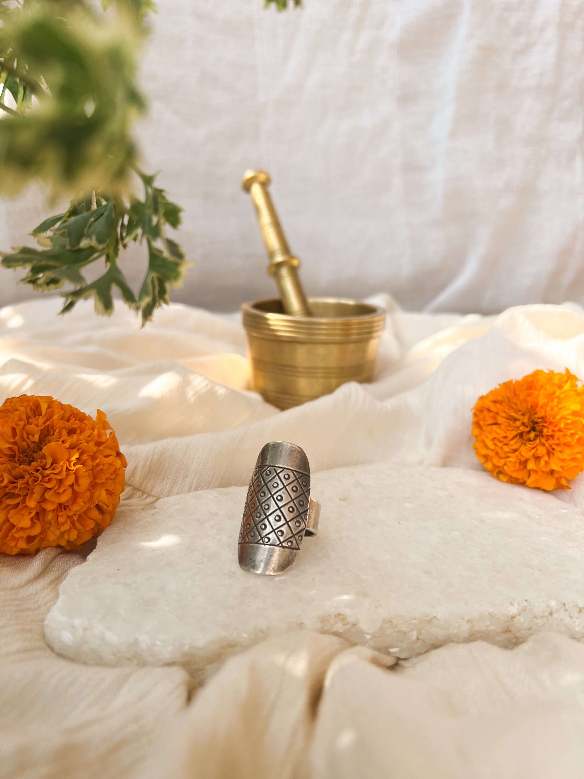 Shila oxidised silver ring with etched details