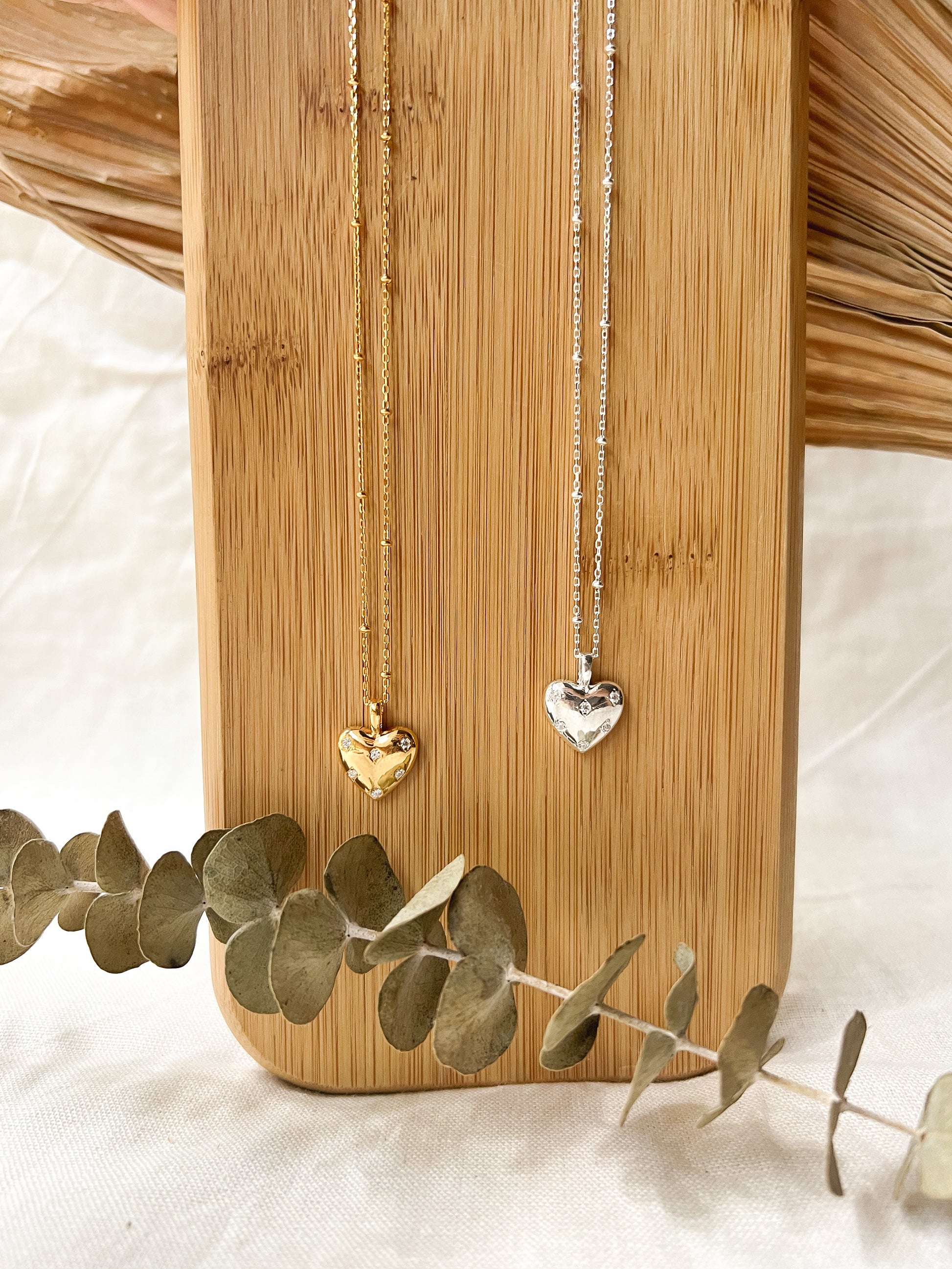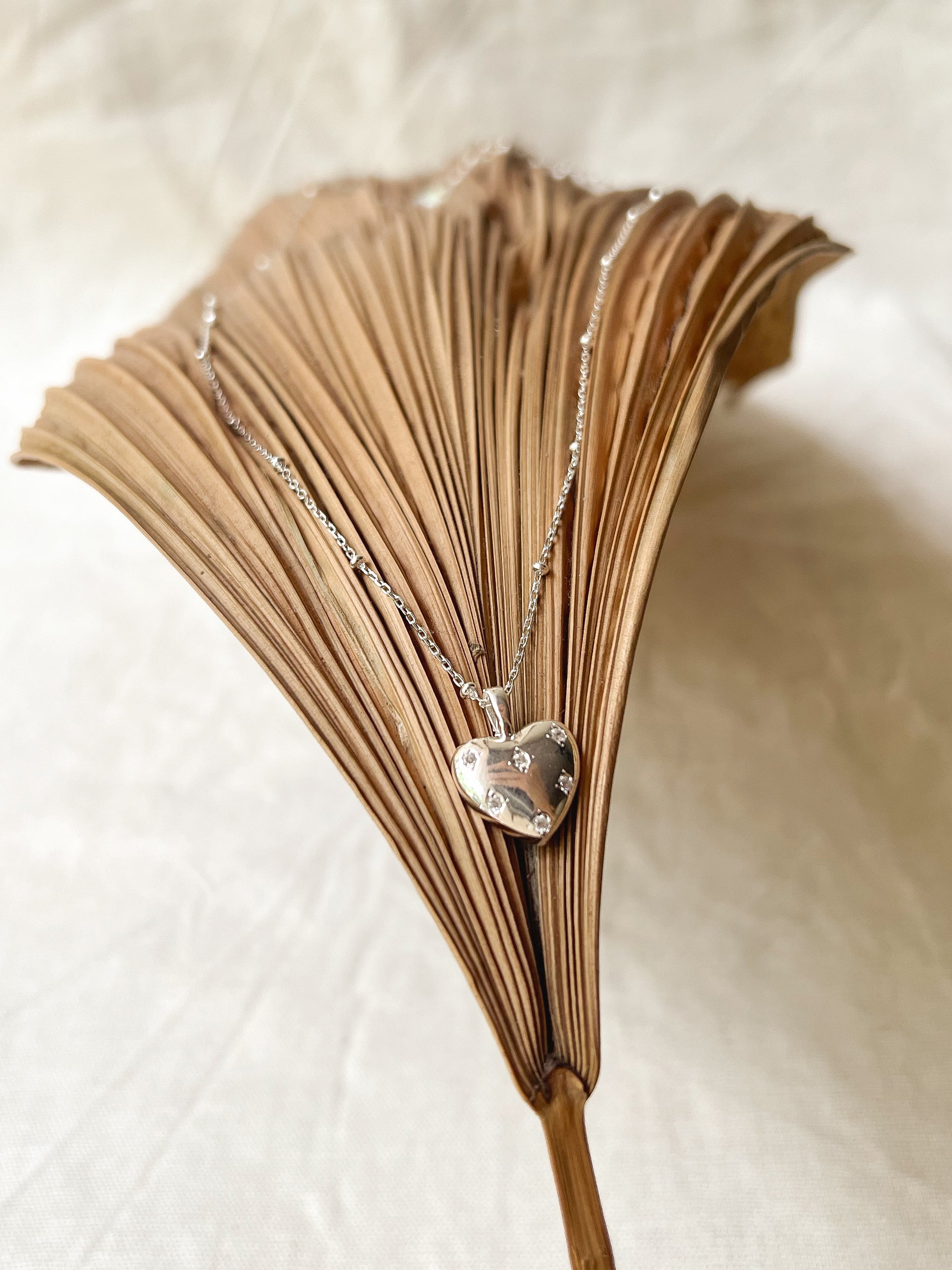 Beautiful heart pendant with studded zircon and silver bead chain , makes it a very special piece for gifting or for oneself. A chic and sophisticated accessory for any occasion. Perfect for adding a touch of glamour to any outfit!