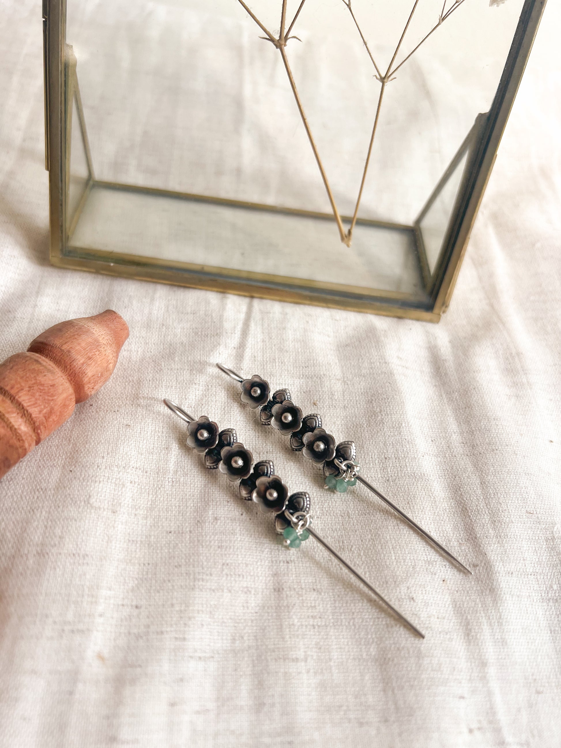 Sugandhi needle earcuff in silver with pearl and jade cluster