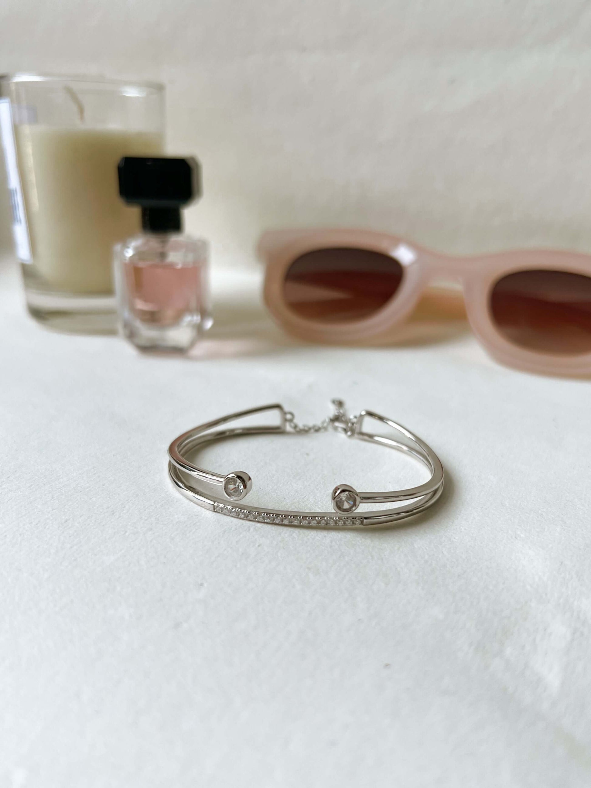 Introducing our stunning bracelet with a double band and zircons, it is perfect for any fashion-forward individual who wants to add a touch of elegance to their outfit. The double band gives a look of wearing 2 bangle stacked together, this unique design is sure to catch the eye.