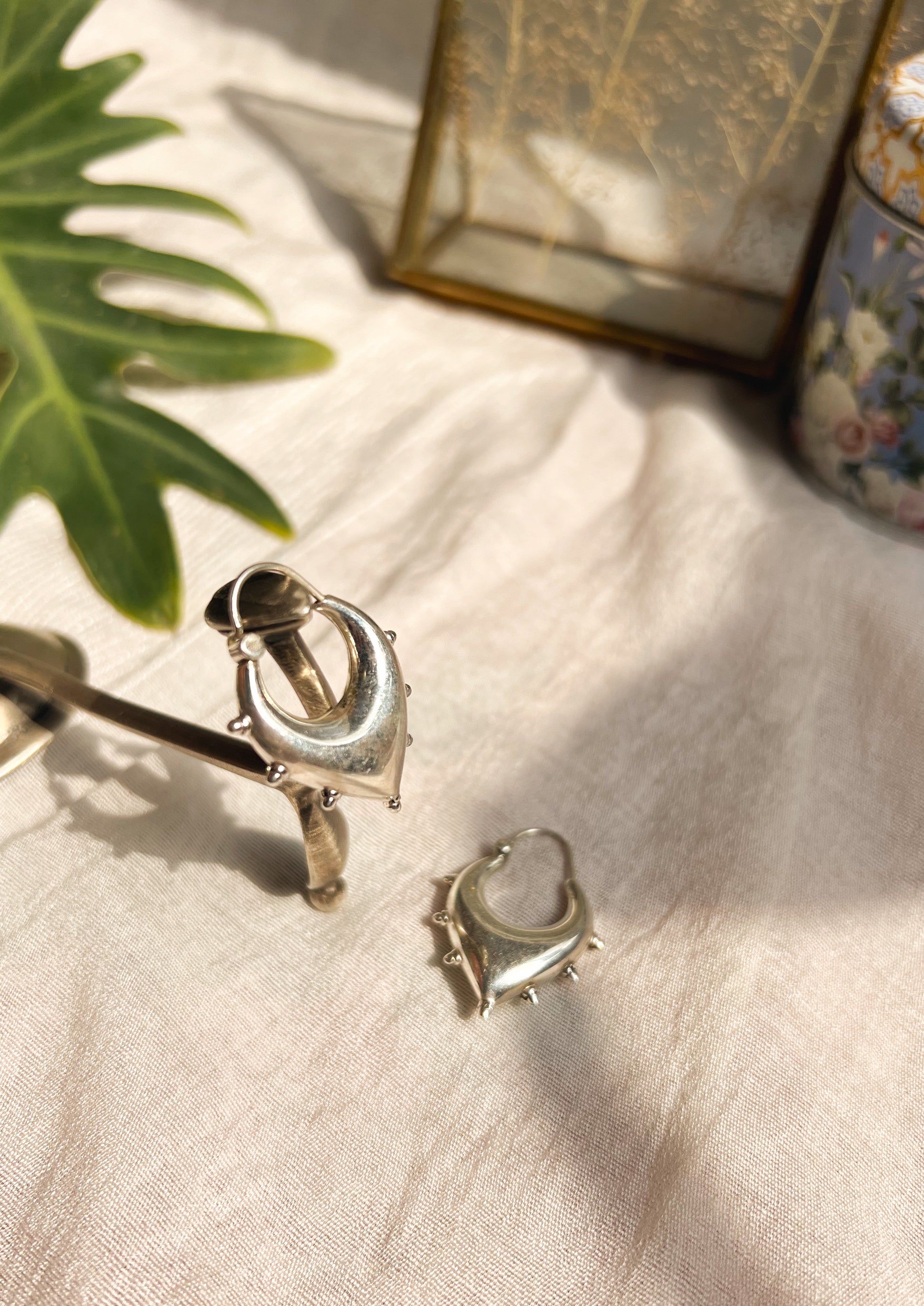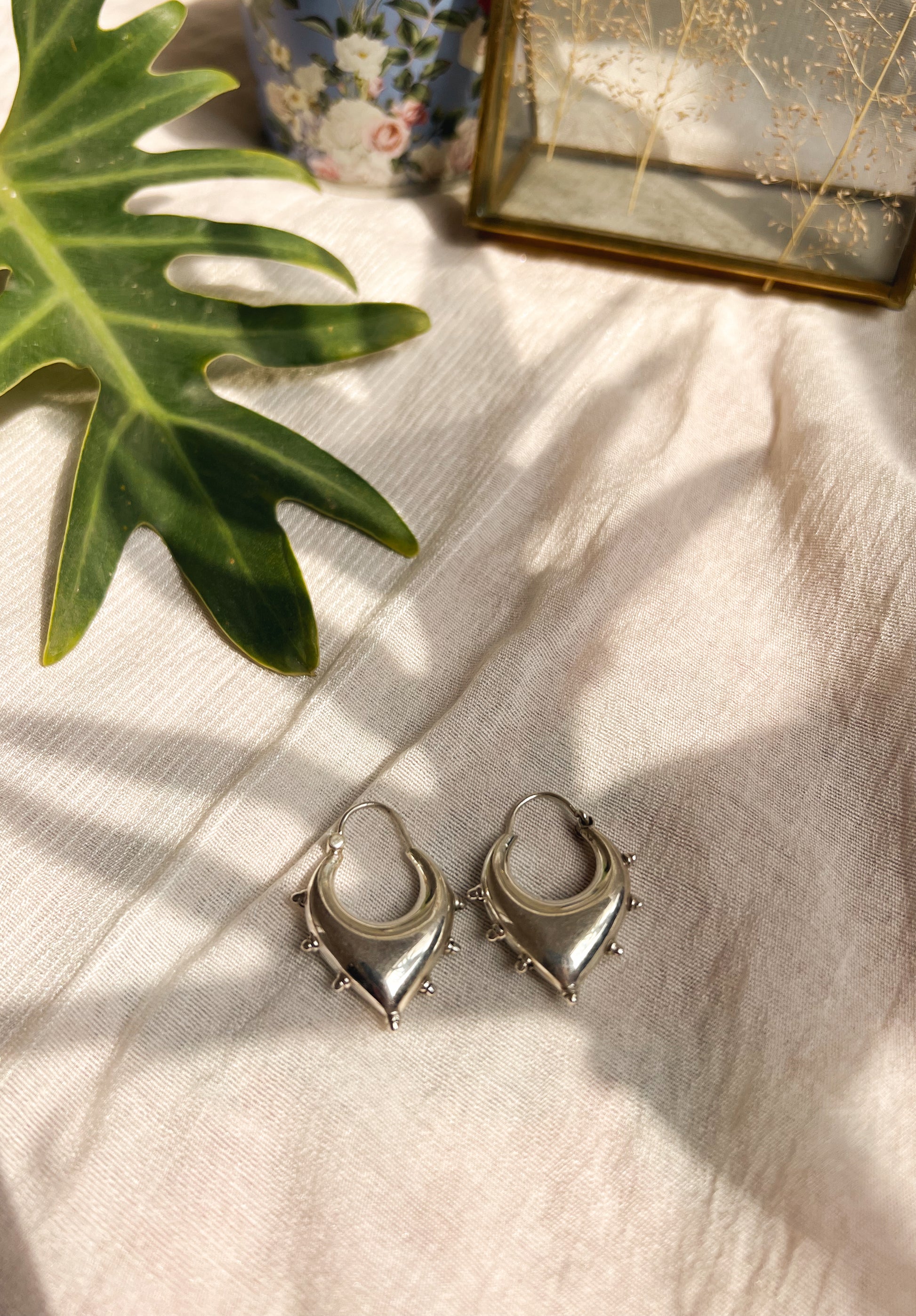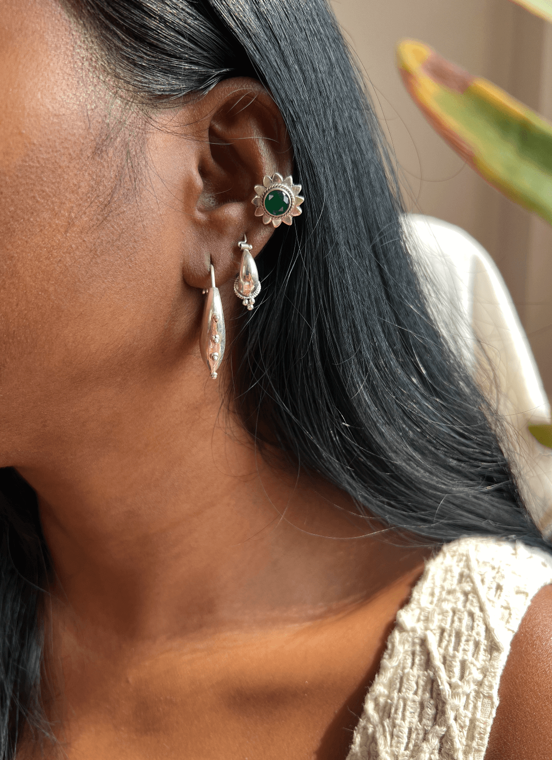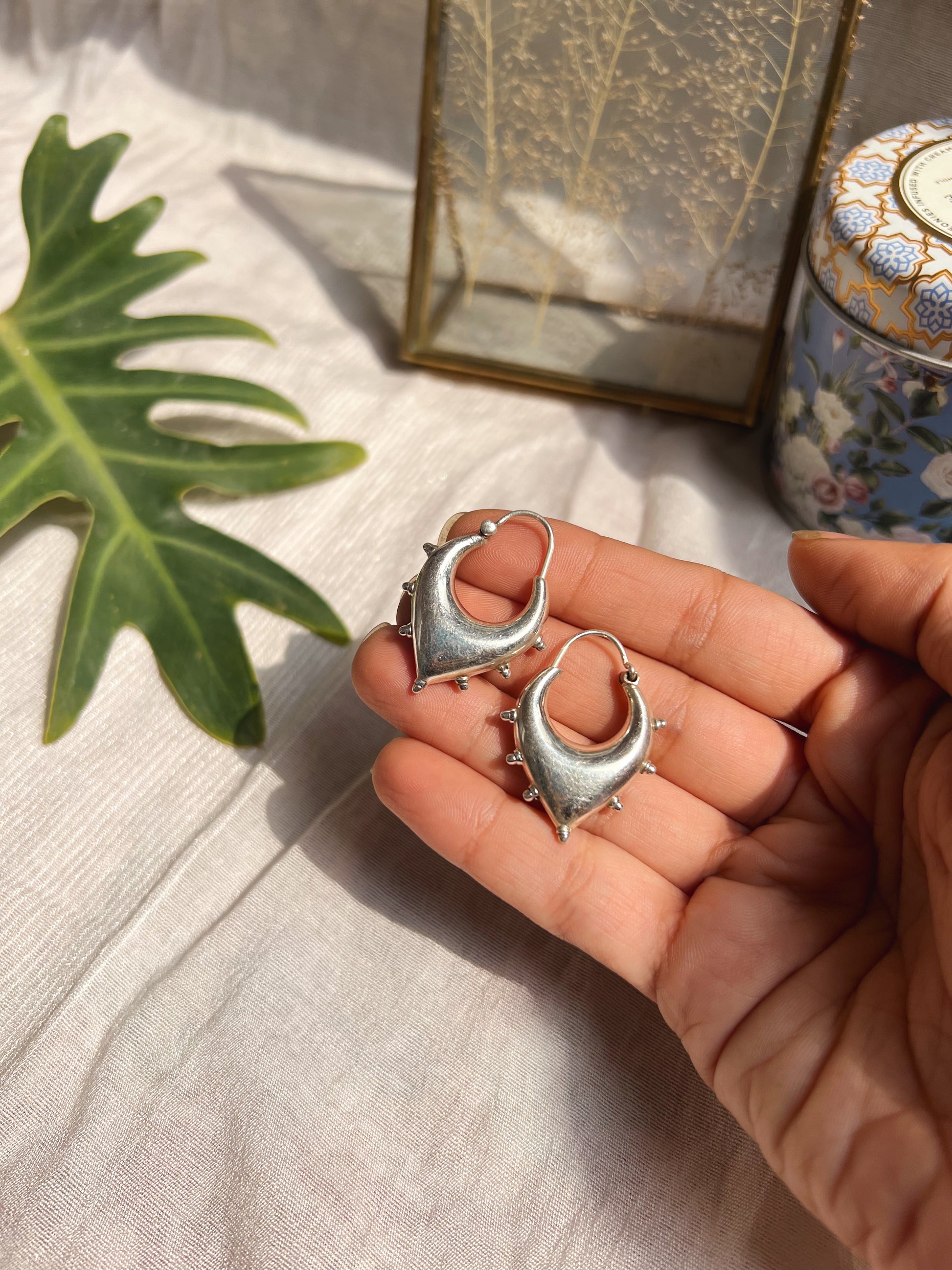 Unnati silver hoops with studding details