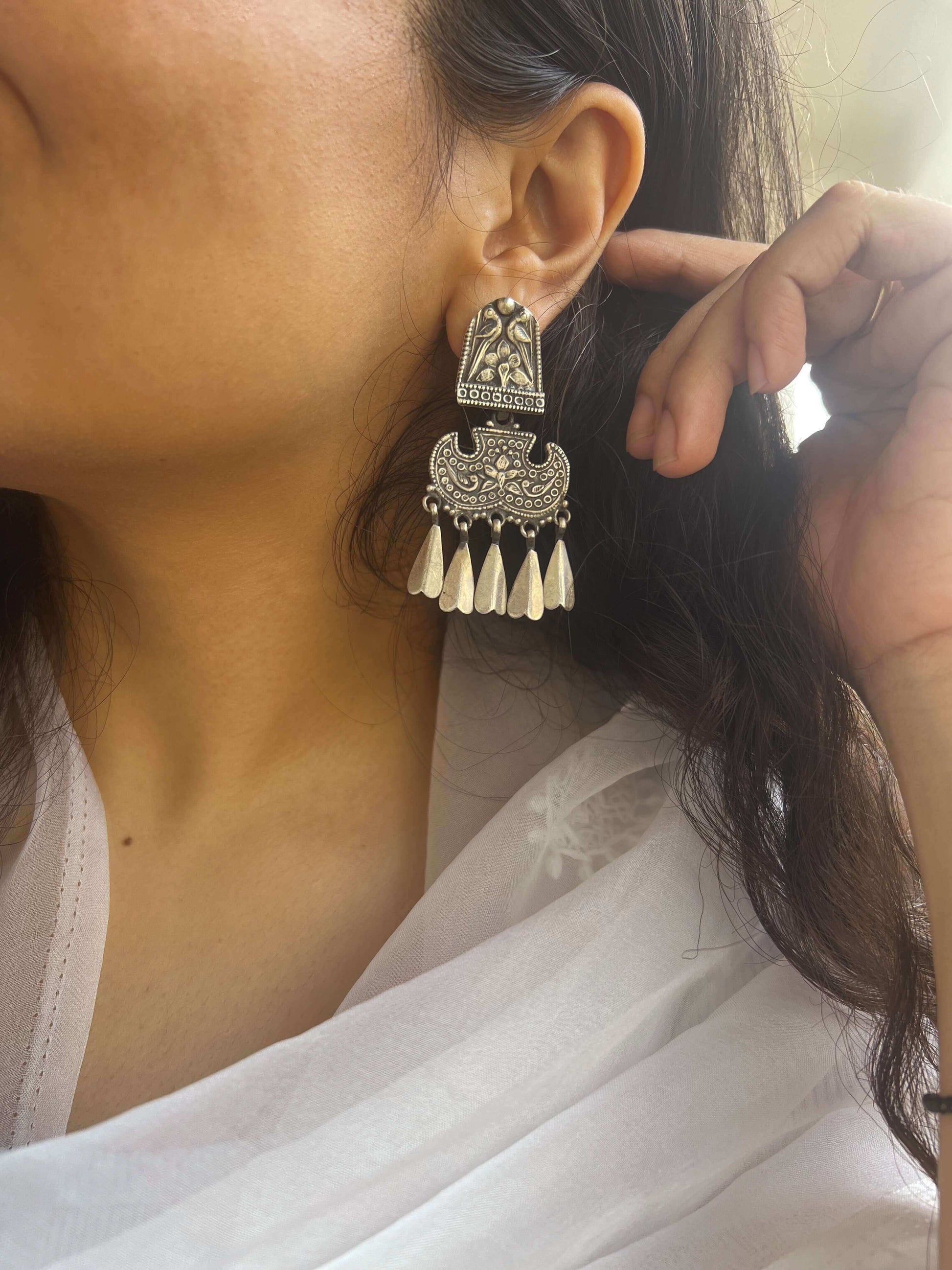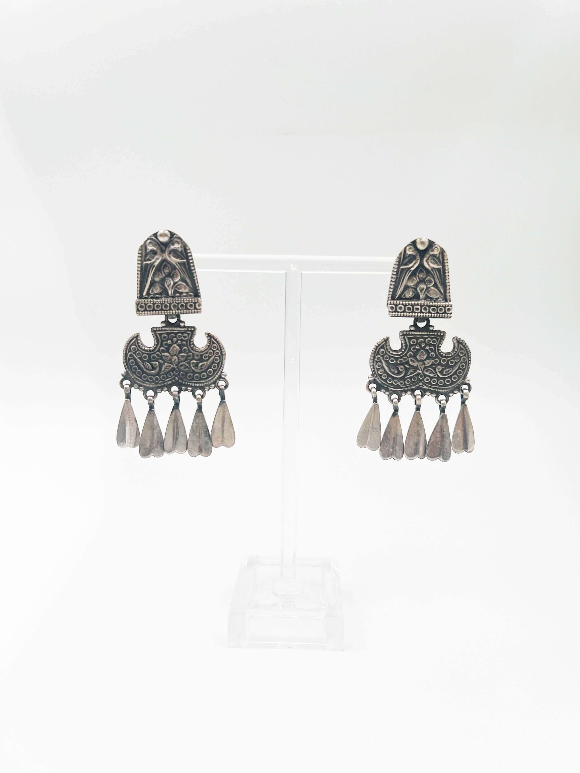 Glorious piece, with medallion shaped tukdi, with nature inspired engravings. It has a push closure and silver petals hanging for a flowy movement.